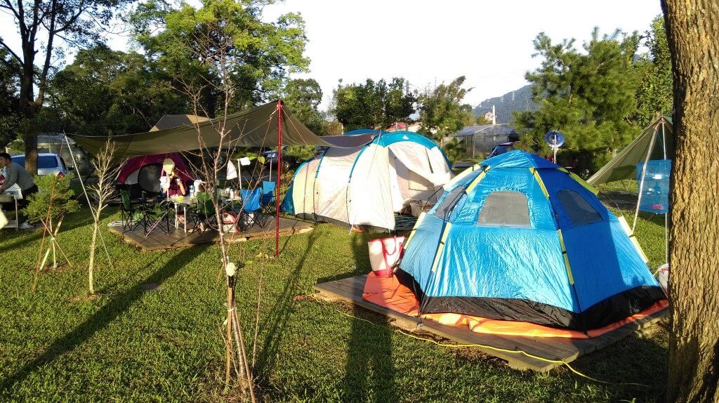 我們是先逛大溪老街,買一些東西之後大概三點多前往營地。營地區域蠻大的,位置安排的也很巧妙。下圖為官方網站上的營地位置圖,可以透過線上訂位系統確認每一個位置是否有人訂了。官方也接受線上付款,可以刷卡喔!
