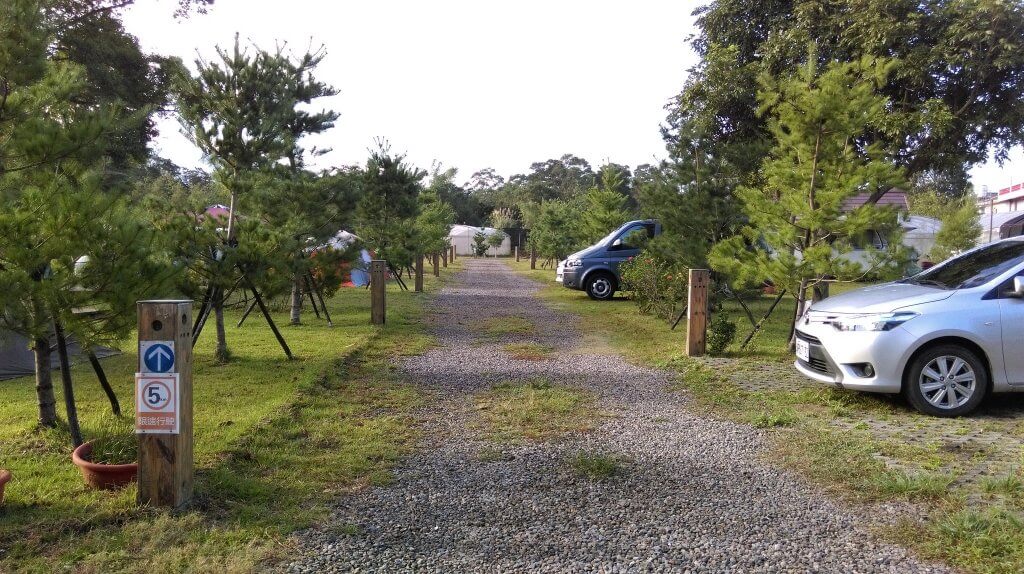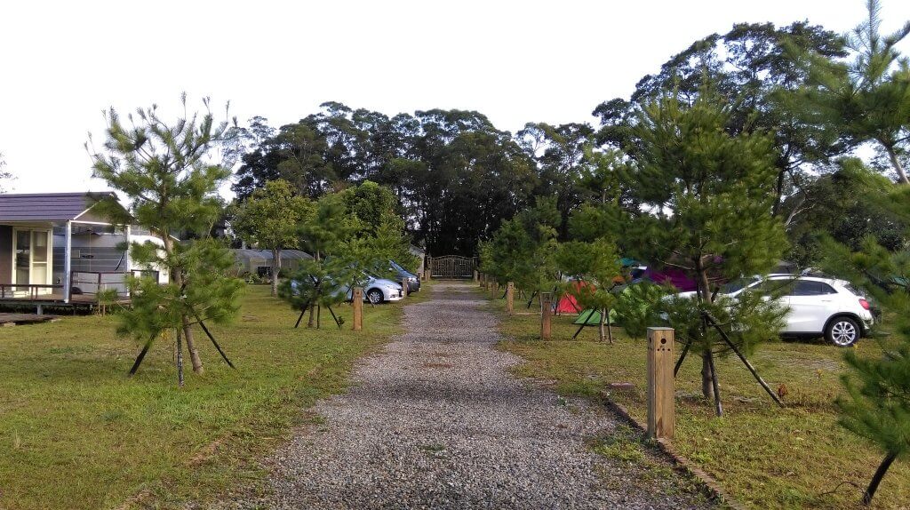 來看看整個營地的樣貌,往大門望去,一條小碎石路。