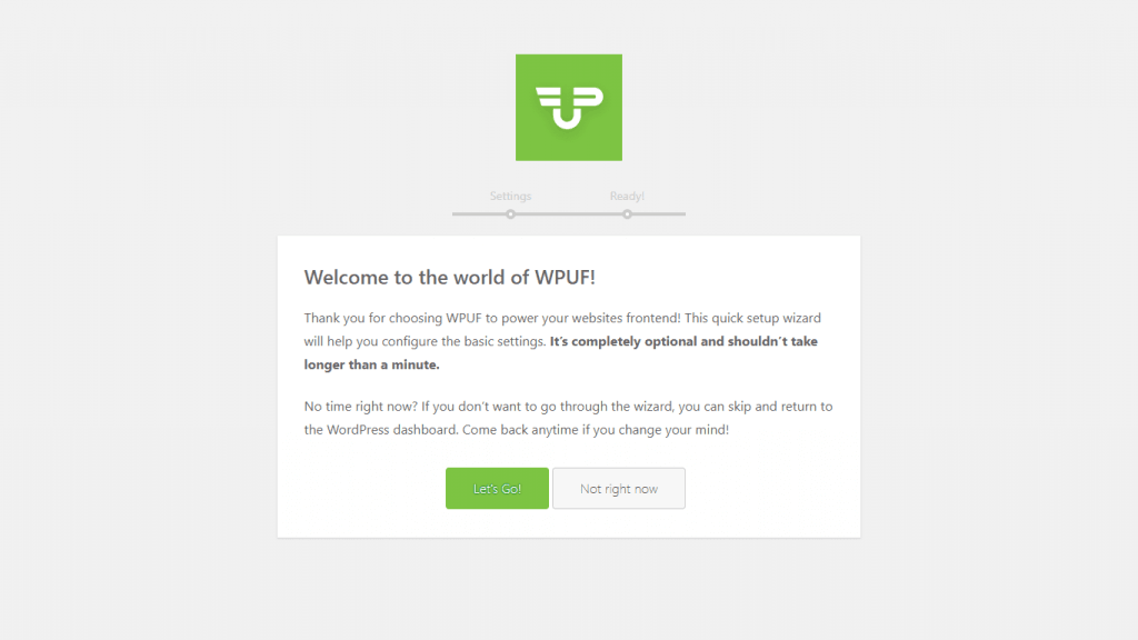 前台讓使用者新增文章及上傳圖片的部分,採用了外掛來WP User Frontend來製作,可以從WordPress官網所提供的外掛服務進行下載,安裝外掛後直接啟用即可。啟用後出現了WPUF的設定的畫面,可以直接點選Not Right Now直接略過。